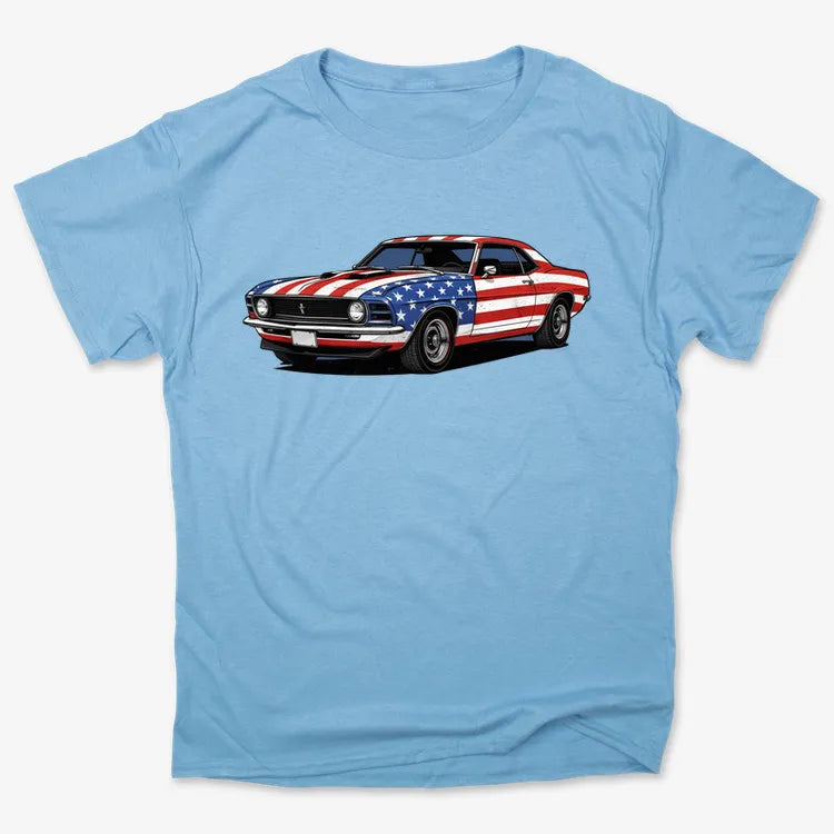Show off your love for classic American muscle cars with this patriotic design. Perfect for car enthusiasts and fans of iconic automotive history.