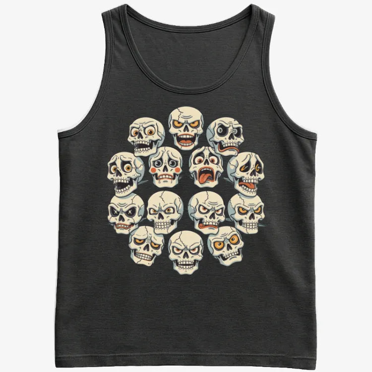 Unleash a parade of expressive skulls with this vibrant tee. Perfect for those who love edgy and artistic designs.